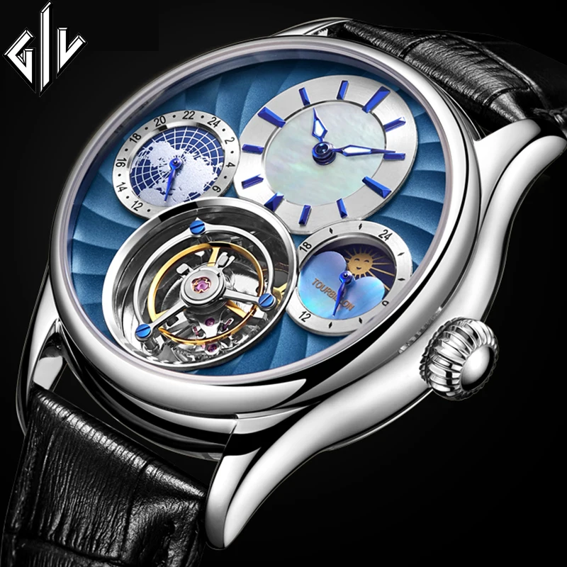 GIV Original Tourbillon Mechanical Hand Wind Mens Watches Top Brand Luxury waterproof Watch men Sap